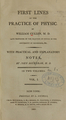 First lines of the practice of physic / by William Cullen, M.D. ... ; with practical and explanatory notes, by John Rotheram, M. D. ; in two volumes ; vol. I[-II].