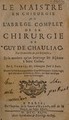 Le maistre en chirurgie, ou l'abregé complet de la chirurgie de Guy de Chauliac. Expliqué par demandes & par réponses, en la maniere qu'on interroge les aspirans à Saint Cosme / Par L. Verduc.