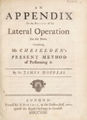 An appendix to the history of the lateral operation for the stone. Containing Mr. Cheselden's present method of performing it / by James Douglas.