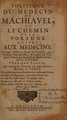 Politique du medecin de Machiavel, ou le chemin de la fortune ouvert aux medecins : Ouvrage réduit. Premiere partie. / par le docteur Fum-Ho-Ham [i.e. J.O. de la Mettrie], et traduit sur l'original chinois, par un nouveau Maître és Arts de St. Cosme. Qui contient les portraits des plus célebres medecins de Pekin.