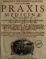 Praxis medicinae infallibilis è principiis mechanicis ... Accedunt dispensatorium domesticum, animadversiones in Machiavellum medicum, declamationes panegyricae novae cum programmatibus et inscriptionibus varii argumenti / [Michael Bernhard Valentini].