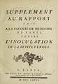Supplément au rapport fait a la Faculté de médecine de Paris, contre l'inoculation de la petite vérole.