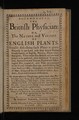 Botanologia. The Brittish physician, or, The nature and vertues of English plants : exactly describing such plants as grow naturally in our land, with their ... applications and vertues, physical and astrological uses, treated of, each plant appropriated to the several diseases they cure.