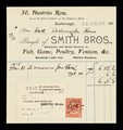 Bought of Smith Bros : wholesale and retail dealers in fish, game, poultry, venison, &c., Wenham Lake ice, native oysters.