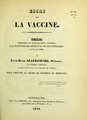 De la vaccine : thèse présentée et publiquement soutenue à la Faculté de médecine de Montpellier, le 12 décembre 1836 / par H.-B. Colass.