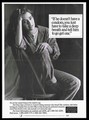 A woman sits sideways on a chair with one leg up and one elbow resting on the back of the chair with the words "If he doesn't have a condom, you just have to take a deep breath and tell him to go and get one"; a poster from from the America responds to Aids advertising campaign. Lithograph.