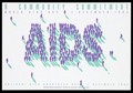 People grouped to form the letters 'AIDS'; advertisement for World AIDS Day, December 1 1992 by the American Association for World Health. Colour lithograph, 1992.