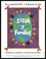 The world surrounded by figures joined at the hands representing families affected by AIDS around the world with red ribbons at the corners; advertisement for World AIDS Day, 1 de Diciembre de 1994 by La Asociacion Americana para la Salud Mundial. Colour lithograph, 1994.