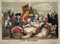 William Pitt the younger and his ministers as anatomists dissecting the body of the Prince of Wales; representing Pitt's reduction of the powers of the regent. Coloured etching by Thomas Rowlandson, 1788/1789.