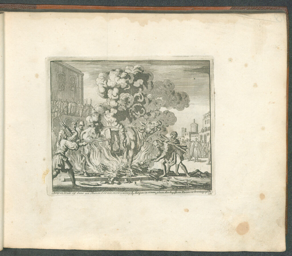 Credit: Theatre des martyrs = Schau-Buhne der Martyrer : depuis la mort de J. Christ jusqu'à present, représenté en tres belles tailles-douces / par le celebre graveur Jean Luyken. Schau-Buhne der Martyrer, gezeichnet und in Kuppfer gestochen von Johann Luyken. Source: Wellcome Collection.