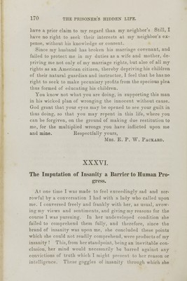 The prisoners' hidden life, or, Insane asylums unveiled : as demonstrated by the report of the Investigating committee of the legislature of Illinois, together with Mrs. Packard's coadjutors' testimony / by Mrs. E. P. W. Packard.