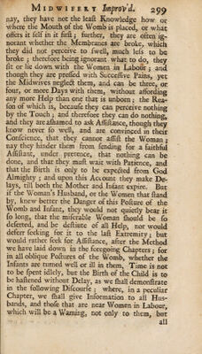 The art of midwifery improv'd. Fully and plainly laying down whatever instructions are requisite to make a compleat midwife. And the many errors in all the books hitherto written upon this subject clearly refuted ... : Also a new method, demonstrating, how infants ill situated in the womb ... may, by the hand only ... be turned into their right position, without hazarding the life of either mother or child / written in Latin by Henry à Daventer ; made English ; To which is added, a preface giving some account of this work, by an eminent physician.