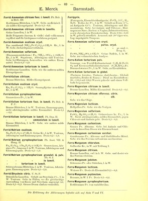 Credit: Verzeichniss sämmtlicher Präparate, Drogen und Mineralien mit Erläuterungen / E. Merck, Darmstadt. Source: Wellcome Collection.