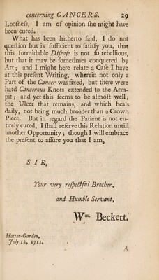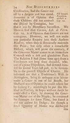 Credit: A collection of chirurgical tracts. I. Of wounds of the head and brain. II. New discoveries relating to the cure of cancers. III. Chirurgical remarks on several curious cases. IV. The history and antiquity of the venereal disease V. A new method of curing consumptions by specific medicines. [Also pieces by other authors by Thomas Nevett] Written and collected by William Beckett ... / [William Beckett]. Source: Wellcome Collection.