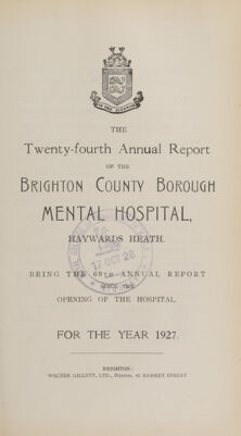 Annual report of the Brighton County Borough Mental Hospital : Haywards Heath : 1927