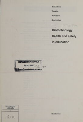 Credit: Biotechnology, health and safety in education / Education Service Advisory Committee. Source: Wellcome Collection.