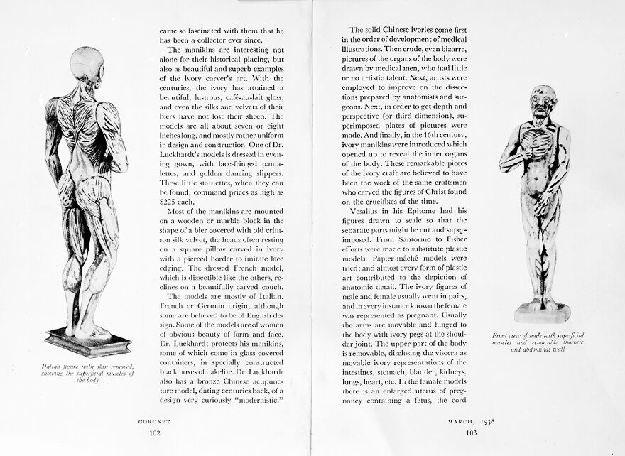 Credit: M0013449: Page from 'Ivory Apes and Angels' paper on anatomical manikins. Source: Wellcome Collection.