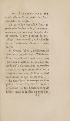 Traité de la construction théorique et pratique du scaphandre ou du bateau de l'homme ... approuvé par l'Academie Royale des Sciences / par M. de la Chapelle.