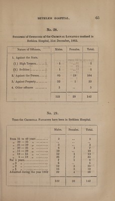 Credit: General report of the Royal Hospitals of Bridewell and Bethlem, and of the King Edward's Schools, for the year ending 31st December, 1862 : printed for use of the governors / Bridewell Royal Hospital and Bethlem Royal Hospital. Source: Wellcome Collection.