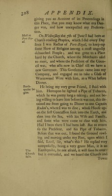 Credit: A true and particular relation of the dreadful earthquake which happen'd at Lima, the capital of Peru, and the neighbouring port of Callao, on the 28th October, 1746 ... / translated from the original Spanish [of P. Lozano], by a gentleman who resided many years in those countries [i.e. H. Johnson]. To which is added, a description of Callao and Lima before their destruction; and of the kingdom of Peru in general ... The whole illustrated with a map of the country about Lima, plans of the road and town of Callao, another of Lima; and several cuts of the natives, drawn on the spot by the translator. Source: Wellcome Collection.