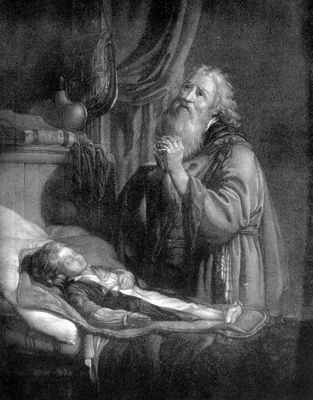 Credit: M0017808: Elias healing the son of the widow, engraving. Source: Wellcome Collection.