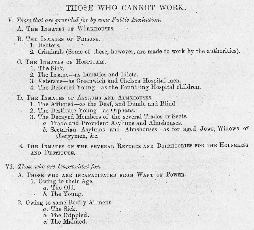Credit: M0013802: Section "Those who cannot work", from <i>London labour and the London poor</i>, 1851. Source: Wellcome Collection.