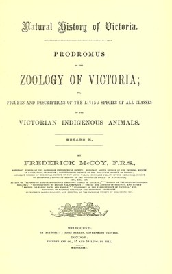 Natural history of Victoria : prodromus of the zoology of Victoria; or figures and descriptions of the living species of all classes of the Victorian indigenous animals / by Frederick McCoy.