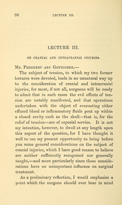 Hunterian lectures on tension, as met with in surgical practice : inflammation of bone and on cranial and intracranial injuries : delivered before the Royal College of Surgeons of England, June, 1888 / by Thomas Bryant.